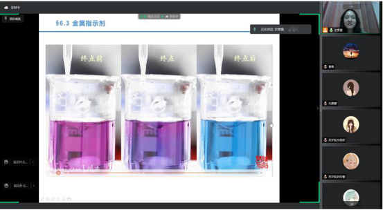 本次教学观摩课的主讲教师是史雯慧老师和张乐老师,讲授的课程分别是《分析化学》和《药用植物学与生药学》。两位青年教师授课自然娴熟,备课认真详实,知识量大,充分利用现代教学手段,线上课堂气氛活跃,具有较强的感染力。同时,教学流程设计流畅,能够结合不同的教学环节使用合适的教学技巧与方法,达到了较好的教学效果。
