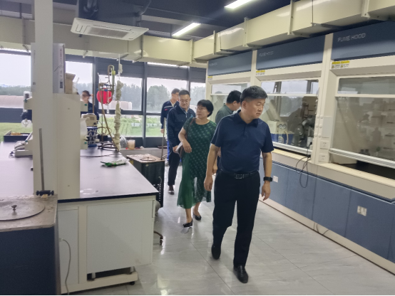 在公司总经理胡浩鹏的陪同下,王孝俊一行首先参观了公司研发实验室、分析测试中心、连续流实验室及中试车间,了解公司的产品种类、研发生产和校企合作情况。