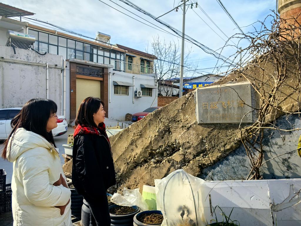 在八里营,党员教师代表们参观了日寇飞机库遗址,这些飞机库由混凝土构筑而成,散落在村子里,每处占地约200平方米。飞机库为拱形建筑,外形像个小土包,远远望去像一口倒扣在地上的大锅,当地老百姓蔑称为“飞机窝”。这些“飞机窝”既是日军侵华的历史见证,也时刻警示着我们铭记历史、勿忘国耻。