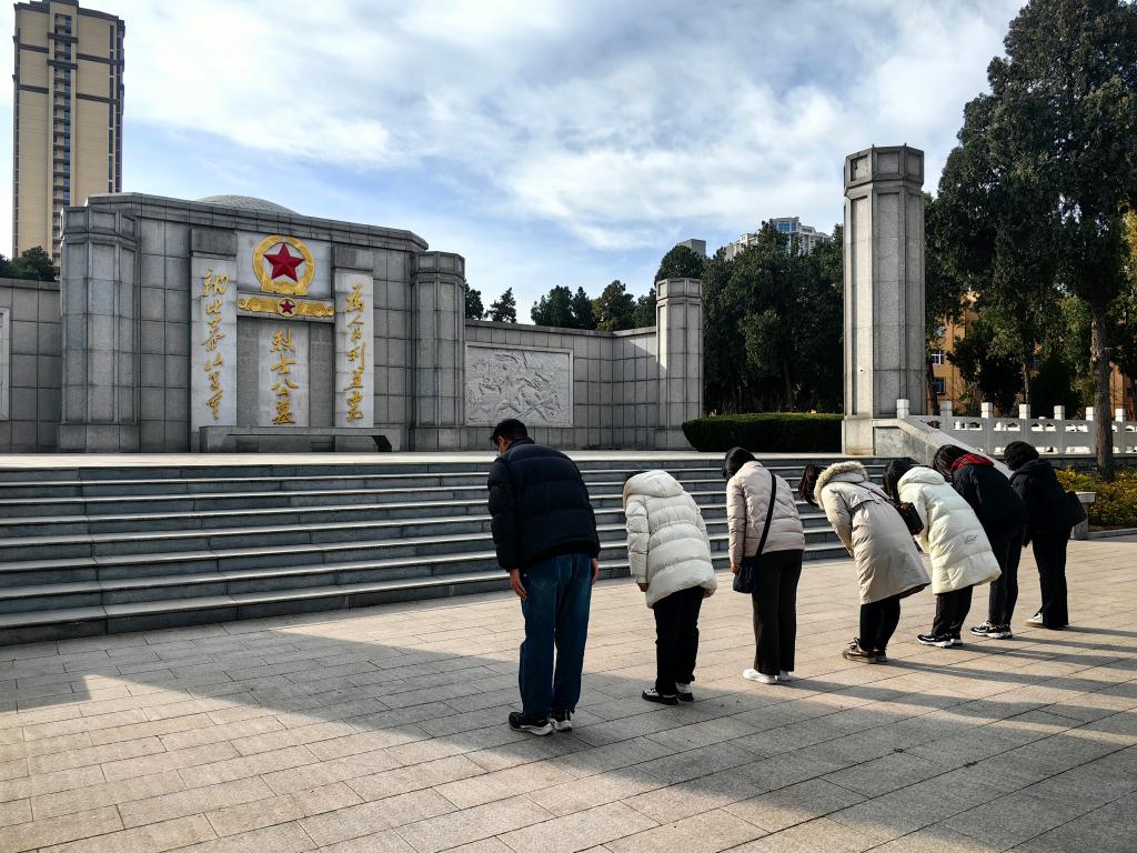 在新乡市烈士陵园,williamhill英国党员教师代表依次缓步环绕四十七烈士纪念墓、英雄墓碑、肖思远和吴志洲烈士塑像、新乡解放纪念碑等进行瞻仰。在烈士公墓前,大家肃穆而立,鞠躬默哀,表达对革命烈士的深切哀悼和无尽的崇敬之情。