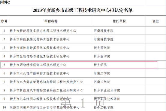 9月1日,新乡市科技局网站公示了2023年度新乡市市级重点实验室和市级工程技术研究中心拟认定名单,我院申报的“新乡市药物精准修饰工程技术研究中心”顺利获批,中心主任徐绍红教授。这是我院建院以来获批的第一个工程技术研究中心,也是2023年我校获批的唯一一个工程技术研究中心。中心针对当前生物与医药行业发展现状和面临的挑战,围绕生物活性杂环分子的精准绿色合成和产业化开展研究,有助于聚集相关领域的高层次人才,立足新乡,辐射中原,放眼全国,提升小分子药物的研究水平和创新能力。