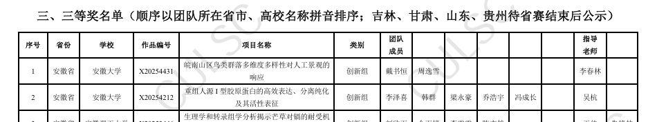 公示情况如下(转载于第十届全国大学生生命科学竞赛官网):
