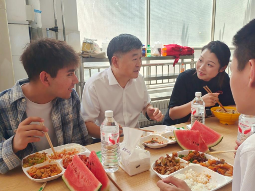 6月13日中午,在学校第二学生餐厅,副校长韩辉与外国语学院、新闻传播学院、体育学院的2025届毕业生代表共进午餐,围绕学校建设、人才培养和未来发展进行亲切交流。韩辉认真听取了毕业生代表们对学校教育教学、校园生活等方面的建议,并寄语同学们在未来的人生道路上勇担使命、砥砺前行,希望他们始终心系母校,为社会贡献青春力量。毕业生代表纷纷表示,将牢记母校教诲,以实际行动回报学校培养。