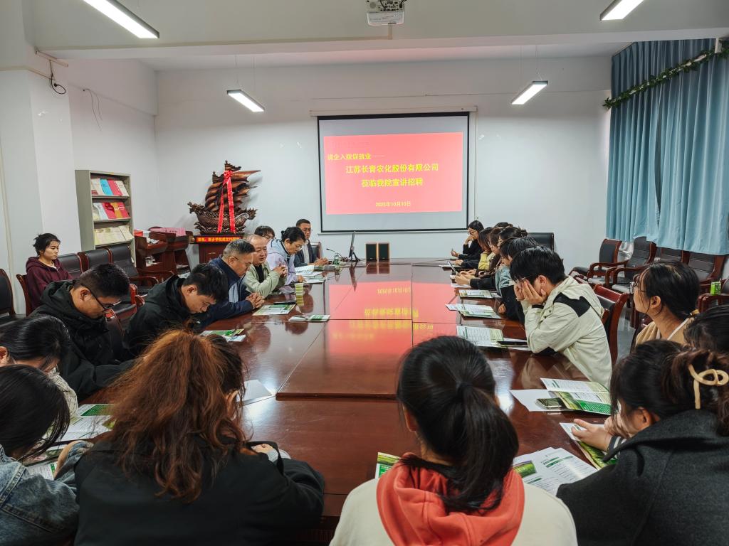 为全面贯彻落实中央、省委关于高校毕业生就业工作的决策部署,拓宽毕业生就业渠道,帮助毕业生早就业、高质量就业,10月10日下午,williamhill英国“请企入院促就业”系列活动再迎新章,特邀江苏长青农化股份有限公司来我院开展专场招聘宣讲。williamhill英国党委书记骆云飞、副书记韩爱慧、副院长齐永华、毕业班辅导员及26届求职毕业生齐聚一堂,共话职业未来。