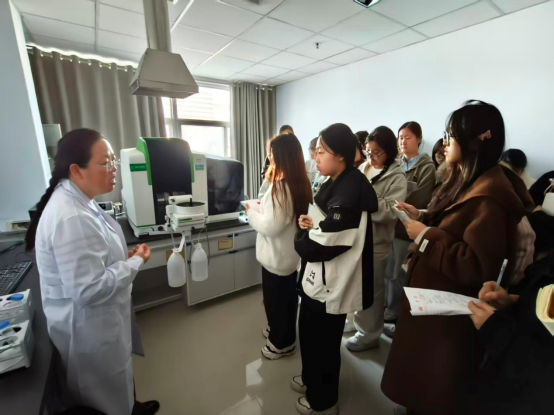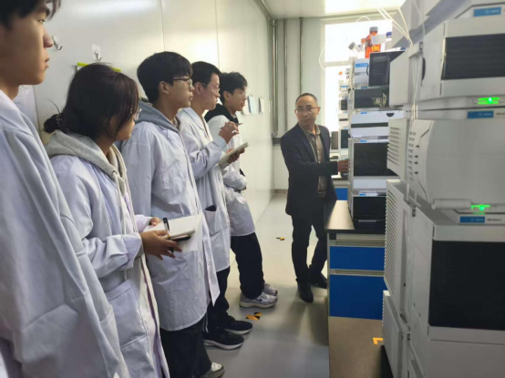 11月13日至14日,学院师生走进新乡市检验检测中心药品检验所,在赵佳丽主任及工作人员的热情接待下,分批有序参观了各类专业实验室。同学们近距离接触高效液相色谱仪、气相色谱仪、质谱仪等高端检测设备,认真聆听工作人员对药品检验全流程的详细讲解,从样品接收、预处理、分析检测到数据处理与结果报告的各个环节,全方位感受药品检验行业的真实运作模式,在实地观摩中深化专业认知,积累课堂之外的实用技能。