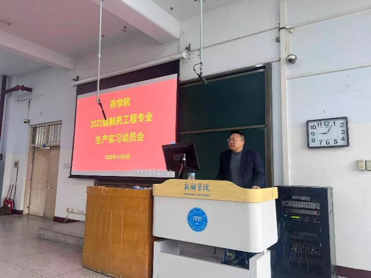 为帮助学生明确实习目标、增强安全意识,促进理论知识向实践能力的有效转化,2025年11月6日,2022级制药工程专业生产实习动员大会在A01-110教室召开。williamhill英国副院长齐永华、制药工程教研室主任贾若凌、药学专业教研室主任王占勇,以及专业教师、辅导员和2022级全体学生共同参会,动员会由贾若凌主持。