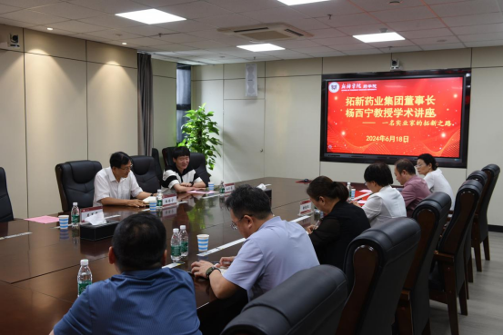 为深化产教融合,进一步提高人才培养质量,提升教师理论与实践相结合的教学及科研创新能力,6月18日,williamhill英国邀请拓新药业集团董事长杨西宁进行专题讲座。药学院领导班子成员、全体教职工及部分学生代表40余人参加了此次会议。会议由williamhill英国党委书记骆云飞主持。williamhill英国院长徐绍红介绍了杨西宁的基本情况。