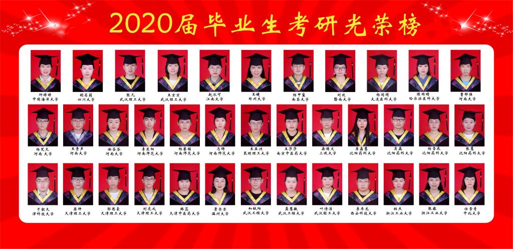 2020年全国研究生录取工作已基本结束,我院2020届制药工程专业毕业生再创佳绩。121名毕业生中共有邱婷婷等37名同学分别被中国海洋大学、四川大学、武汉理工大学等高校录取为硕士研究生,考研录取率占比在去年29.1%的基础上又提升1.5个百分点,达到30.6%。