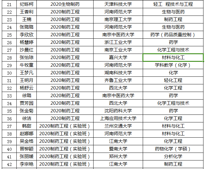 在今年的考研中,我院学子们展现出了强大的竞争力和深厚的学术素养。他们不仅在专业课上取得了优异的成绩,更在复试中展现出了优秀的综合素质和创新能力。我院2024届本科毕业共有54人拟录取为硕士研究生,其中普通本科毕业生115人中共有50人被录取,录取率为43.48%。制药工程1班考研录取率为51.72%;制药工程(实验班)考研录取率为50%,其中李宁波等9人被西安交通大学等“双一流”大学录取,“双一流”大学录取率为32.14%。录取人数和录取率均创下了历史新高。