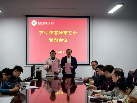 随后,实验室负责人、教师代表和学生代表等进行了表态发言,逐级签订了实验室安全责任承诺书。