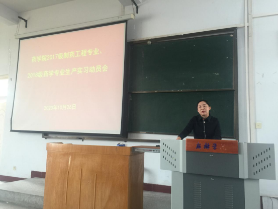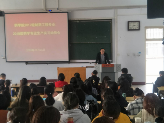为了进一步做好毕业生实习前的思想工作,克服同学们实习前的焦虑情绪,同时便于同学们能了解并尽快适应实习生活,以优异的成绩圆满完成此次实习任务,10月26日下午,我院在A01-423教室召开了制药工程、药学专业生产实习动员大会,我院党总支书记韩楠、副院长齐永华、制药工程专业以及药学专业教师及2017制药工程专业、2018药学专业的全体同学参加了此次动员会,会议由丰贵鹏老师主持。