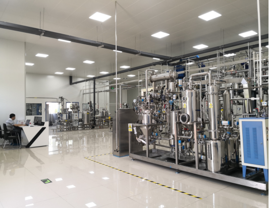 化学药物合成生产线由集中控制中心进行远程自动化控制。学生在校就可以接受到最先进的工程训练,为培养学生实践创新能力提供了坚实保障。主要设备包括:无尘投料系统、配制罐、储罐、层析柱成套设备、溶解脱色罐、烘干箱、隔离式投料器、不锈钢反应釜、搪玻璃反应釜、平板离心机、高位罐、冷水机组、真空系统、热水罐系统、冷却塔系统、蒸汽系统、控制系统、车间空调系统、壁挂式空调、立柜式空调、废气处理系统、一体式废水处理机。