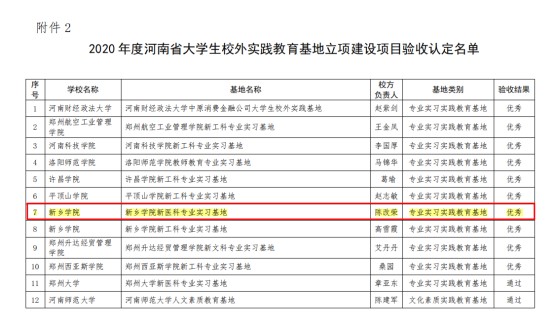 近日,河南省教育厅公示了2022年度本科高校大学生校外实践教育基地和2020年度立项建设基地验收认定名单,我院建设的英国威廉集团新医科专业实习基地为2020年度立项建设基地验收优秀基地。